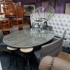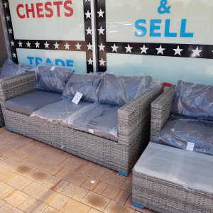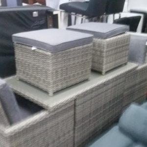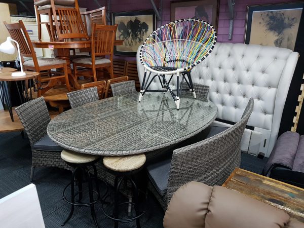 Lge Oval Wicker Dining Set with 4 chairs and 2 benches
