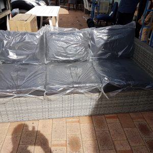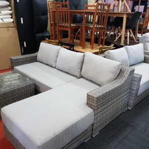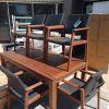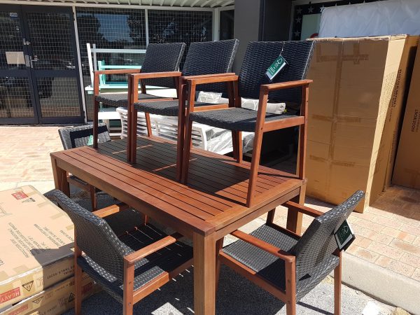 Lovely timber 7pce Dining with timber and wicker chairs